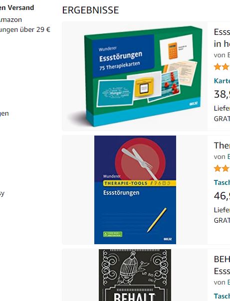 Bücherübersicht zu und über Essstörungen bei Amazon